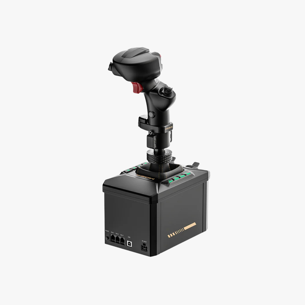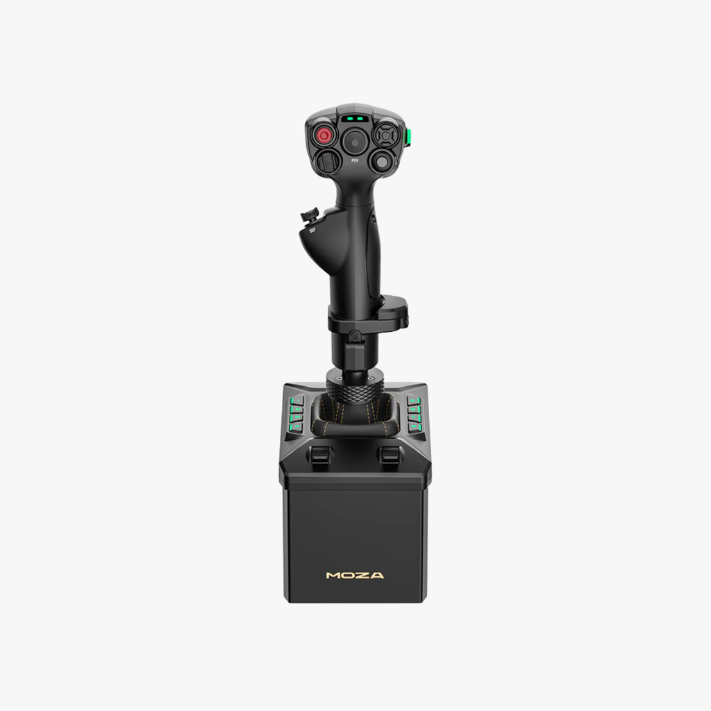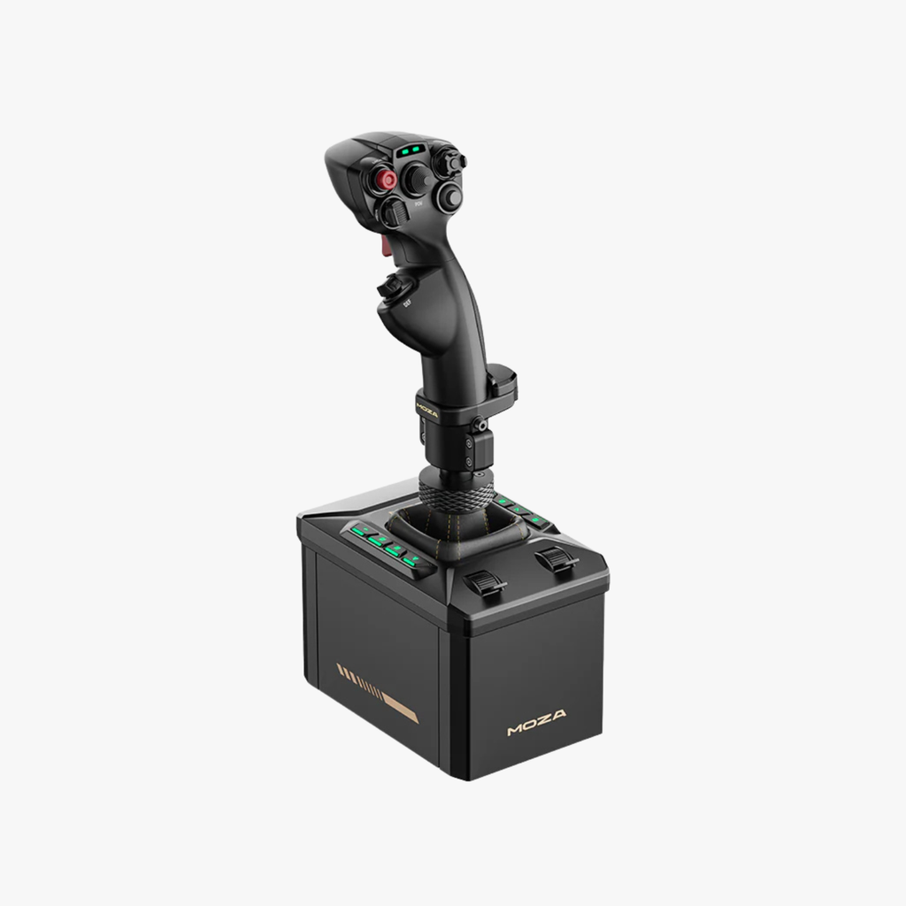 MOZA AB6バンドルは、高トルク6N·mのフォースフィードバックベースと高精度MHGフライトスティックを組み合わせ、正確なフォースフィードバック、29種類のプログラム可能な信号、そして臨場感あふれる飛行制御を実現します。宇宙船にインスパイアされたコンパクトなデザインは、デスクトップクランプ(付属)、オプションのベースプレート、または直接ハードマウントに対応しており、コックピットやデスクトップのあらゆるセットアップに対応します。MOZAおよび一部のサードパーティ製フライトスティック、そして主要なフライトシミュレーターと互換性があります。
